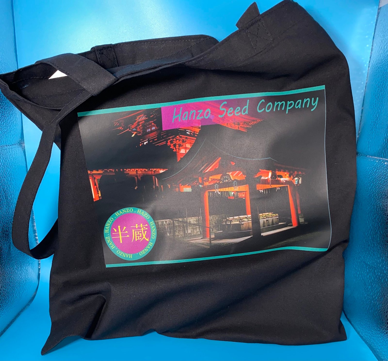 • A 15” × 16” black cotton tote bag
